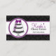 © 2012 Socialite Designs. Our gourmet cake bakery business card design has an elegant cake on a stand inside a lace circle. A perfect business card for a bakery business or cake designer. Personalise this cake, lace and damask business card with your information.