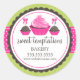 © 2012 Socialite Designs. Our elegant cupcake and cake pops bakery stickers has a gourmet cupcake and cake pops design inside a lace / scallop circle. The design also has a vibrant fuchsia pink ribbon with polka-dots. A wonderful design to use as seals on bakery boxes.
