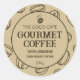 The label features a sophisticated and modern design with elements such as coffee beans, steaming cups, or coffee plants. The use of rich, warm colours like browns, golds, and greens evokes the freshness and richness of high-quality coffee.