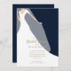 A bride in her gown and veil on a navy blue background with gold lettering (not metallic) is perfect for wedding bridal shower invitations. MORE colours in our collection.