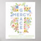 A vibrant, digital art poster features a cross draped with a lush of beautiful flowers. The words "GRACE & MERCY" are written across the cross beam, with the passage from Ephesians 2:4-6 transcribed neatly below. The clean lines and rich colours of the digital art style create a powerful visual representation of the poster's message.