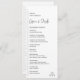Modern wedding program featuring a simple and minimal geometric design with a vertical line along the left side with your details in left alignment. Your names are in a handwriting script for an elegant touch. In the bottom right corner is your two initial monogram over a small horizontal line. The colour palette may be changed in the design editing tool.