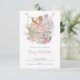Graceful style to invite your daughter's friends to her 5th birthday party celebration, with this illustration of a whimsical ballerina, flowers, foliage, birds and balloons, and a touch of gold faux glitter. Easy to personalise the text to your own requirements.