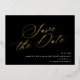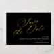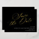 This gorgeous wedding save the date features graceful calligraphy script in gold foil, a chic black background, and classic typography. This elegant design is a fabulous choice for many styles of events, from classic to boho. You can customise this design even further by adding a photo or additional text to the back. Foil is available in gold, silver, or rose gold and absolutely shines!