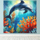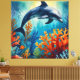 Immerse yourself in the vibrant beauty of an underwater world with a graceful dolphin gliding through a lush coral reef. This watercolor artwork captures the serene harmony of marine life in vivid detail.