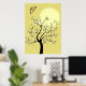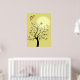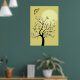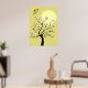 A graceful tree with dark, elegant branches sways against a yellow backdrop. Delicate blooms adorn its limbs, while soft yellow butterflies flutter around, adding a serene touch of movement and lightness to the composition.