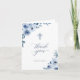 Graceful Dusty Blue Floral Baptism Christening Thank You Card