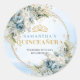 Graceful Dusty Blue Gold Greenery Quinceañera Classic Round Sticker