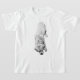 This striking monochrome design shows a dog lowering itself with soft intent. A shirt that carries themes of grace, loyalty, and quiet acknowledgement.