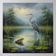 Graceful Heron in a Serene Pond Amid Lush Greenery Poster