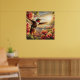 A vibrant painting capturing the elegance of a hummingbird in flight above a colourful array of blooming flowers in a lush garden.