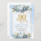 Graceful light blue gold frame 90th birthday invitation