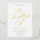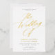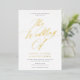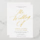 This gorgeous wedding invitation features graceful calligraphy script in gold foil, a classic white background, and elegant typography. This elegant design is a fabulous choice for many styles of events, from classic to boho. You can customise this design even further by adding a photo or additional text to the back. Foil is available in gold, silver, or rose gold and absolutely shines! Select raised foil for your wedding invitations to add that wow factor!