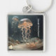 A graceful 3D jellyfish drifts across antique paper, blending historical charm with a mysterious underwater allure.