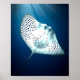 Dive into the mesmerising beauty of the underwater world with this stunning image of a spotted ray gracefully swimming through the deep blue ocean. The soft, ethereal light filtering through the water creates a magical ambiance, highlighting the intricate patterns and textures of the ray's spotted skin. This captivating scene invites viewers to explore the wonders of marine life and appreciate the delicate balance of nature beneath the waves. Perfect for those who love ocean photography, marine wildlife, and serene, calming art.