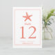FROM THE GRACEFUL STARFISH WEDDING COLLECTION. Doubled Sided Table Number Cards perfect for your Rehearsal Dinner, Wedding Reception or any dining event. A single elegant starfish design in a PAPAYA / CORAL Colour. If you have any questions on this design or want a colour change to match your wedding please email me paula@labellarue.com Check for the Wedding Suite, INVITATION, RSVP, RECEPTION and GUEST SEATING Cards to match! Don't forget to pick your favourite cardstock to have it printed on!