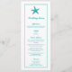 FROM THE GRACEFUL STARFISH WEDDING COLLECTION. A single elegant starfish design in a TEAL / TURQUOISE Colour. Wedding Reception Menu Card in on an elegant narrow card. If you have any questions on this design or want a colour change to match your wedding please email paula@labellarue.com BEFORE placing an order so any changes needed can be done before ordering. Check for the Wedding Suite, INVITATION, RSVP, RECEPTION and GUEST SEATING Cards to match! Don't forget to pick your favourite cardstock to have it printed on!