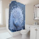 This image features a breathtaking white peacock with its feathers fully fanned out, standing gracefully in a misty, dreamlike setting. The intricate details of its plumage, with delicate eye-like patterns, create an elegant and ethereal feel. The soft, diffused light filtering through the trees enhances the serene atmosphere, making the scene feel almost magical. This design would make a stunning shower curtain, adding a touch of sophistication and nature-inspired beauty to any bathroom!