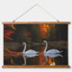 Graceful White Swans Gliding Across Autumn Pond Hanging Tapestry
