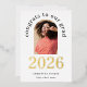 Grad 2025 Arch Photo Real Gold Foil Announcement. A modern style to announce the news of your grad with 2025 in real foil in gold alongside the rest of the text in black. Easily to personalise with your grad’s name and high school and message on the back, and replace the sample photo with your own which is within an arch shape