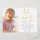 Grad 2025 Photo He Did It Graduation Gold. The elegance of real foil in gold for He Did It in set informal typography. Easily personalise the rest of the text and replace the photo with your favourite which has a graduated overlay on top so it fades away where text is partially overlaid on to it.