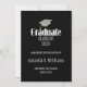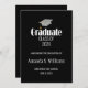 This is a simple and modern design with a grey graduation cap, yellow gold tassel, white text and black background. Yellow gold is printed colour, not metallic foil.