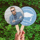 Your favourite photo, the words Our Graduate, your name on the front and graduation cap and more information on the powder blue background on the back. These hand fans are a fun way to stay cool on graduation day. Matching items in our store.