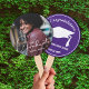 Your favourite photo, the words Our Graduate, your name on the front and graduation cap and more information on the purple background on the back. These hand fans are a fun way to stay cool on graduation day. Matching items in our store.