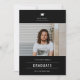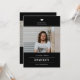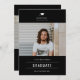 Graduation Cap accent, photo graduation announcement and invitation in classic black colour with white typography. Template lines for graduate's name, class of year and school. Back of card features 1 additional photo space with text lines for your open house/graduation party details.