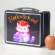 This celebratory lunchbox features a sophisticated cartoon cat wearing a tiny graduation cap and holding a stack of books, symbolising academic achievement. "BACK TO SCHOOL" is written in an elegant, cursive font. Perfect for celebrating milestones.
