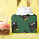 Creative graduation gift wrap and party decoration featuring black and gold graduation cap on green background. Edit text to add grad's name and the senior class year.