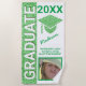 Create your own personalised graduation gift with this custom beach towel design in faux green glitter and your graduate's photo framed in green. Easy to customise, this glam green and white graduation beach towel is the ultimate send off gift for when they graduate high school or college and head off for a summer of fun before real life begins. A border of faux green glitter on the left is the backdrop for GRADUATE in white typography text with a drop shadow of darker forest green. The rest of this personalised pool towel is white with three sets of green text for the graduation year, the graduate's name and a short message above the photo. From the faux green glitter cap and tassel design to the custom text, this personalised beach towel is ready to make your own and surprise your grad after the school days are done.