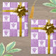 Celebrate the grad with this create your own custom graduation wrapping paper in a fun purple and white chequerboard pattern and a bit of faux glitter for your special celebration. This personalised graduation wrapping paper roll is so easy to customise - use the three text templates to add your graduate's name in a simple purple font, keep the CONGRATS GRAD in purple or change it to CONGRATULATIONS or CLASS OF and then edit the graduation year in a bold white font with a deep purple drop shadow set on the faux purple glitter graduation cap and tassel design. The solid white squares with the cap and tassel design and text alternate with the purple faux glitter squares give this design a modern touch and will take your graduation gift presentation up to the next level.