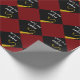 Graduation gift wrap or graduation party decoration featuring creative black cap with gold tassel on a maroon background. Edit text to add his or her name.