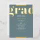 Celebrate in style the new graduate with this modern and stylish graduation party invitation. The design features the word GRAD at the top on bold typography and all party information underneath over a green background with touches of real gold foil invitation, the design is finished on the reverse with a template space for your favourite grad picture, grad year and name. Personalise the template with the fields provided or click customise further for more options.