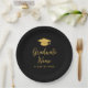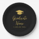 Grad Name Script with Cap - Black Gold Graduation Paper Plate
