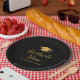 A modern black and gold plate with a gold grad cap and bold text with a theme. A great graduation party decor addition to celebrate the graduate. Personalise with a name and date.