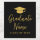 Grad Name Script with Cap - Black Gold Graduation Wine Label
