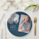 Navy blue and silver glitter graduation party paper plates decorated with silver balloons and a photo of the graduate. Personalised with her name, school name, and graduation year. Customisable to match your own school colours. Perfect for high school or college/university graduation parties. Contact me for assistance with your customisations or to request additional matching or coordinating Zazzle products to celebrate your graduate.