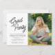 This simple grad party invitation features written script and a vertical photo. Custom text allows you to add your party invitation details.