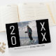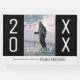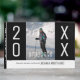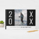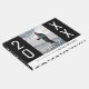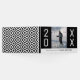 Create a wonderful keepsake for your graduate with a cool, modern, customisable graduation guestbook featuring their name, photo, graduation year, and school. Replace the sample photo with your own. The wide black borders on either side contain 20 on the left and XX on the right in large white text for the graduation class year which you can customise. The trendy white geometric text that overlays the photograph on the front reads, "Graduate." The stripe of white across the bottom reads, "Share your favourite piece of advice with [GRADUATE'S NAME]." You can customise the message and text on the spine. Add your grad's photo, name, high school or college name, graduation date, and text for a unique gift. The back features a bold geometric pattern of diamonds, zigzags, and meanders.