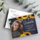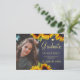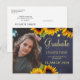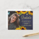 Floral elegant graduation announcement card featuring sunflowers bouquets and a faux gold chic typography script over a dark midnight navy blue chalkboard background.+++++++++ Easy to personalise with your name, school and class, your custom text, and photo on both sides!