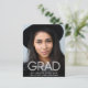 Fun, trendy and budget-friendly graduation announcement featuring "GRAD" in modern white typography overlaying the graduate's photo. Personalise with their name, class year and school.