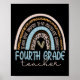 Grade Teacher Leopard Boho Rainbow Back To School Poster