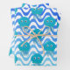 Gradient Blue Waves And Jellyfish Pattern Wrapping Paper Sheet