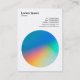 A business card template with an attractive bold gradient circle motif. Company name, business type and address on the front with name, job title, telephony, web and email addresses on the back, with the same layout. A sharp modern abstract geometric design suitable for many types of businesses and uses.