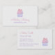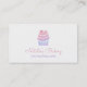 A cupcake illustration with a frosting and heart decor with a blend of digital gradient textures of red, pink, purple and blue. Pretty and elegant business card for bakers, pastry chef and related businesses.