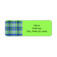 These return address labels have a geometric design of lines in shades of blue and green woven to make a plaid.