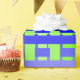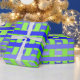 This wrapping paper has a geometric design of lines in shades of blue and green woven to make a plaid.