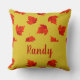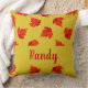 Gradient red dry leaves custom name yellow cushion
